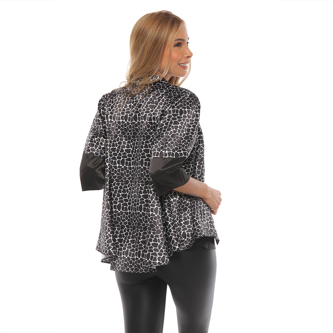 Diseño único versatil con cuello cerrado o abierto con botones en frente el cual puedes utilizar como prenda para dormir o como top multiuso con tu jean, short o pantalón favorito.